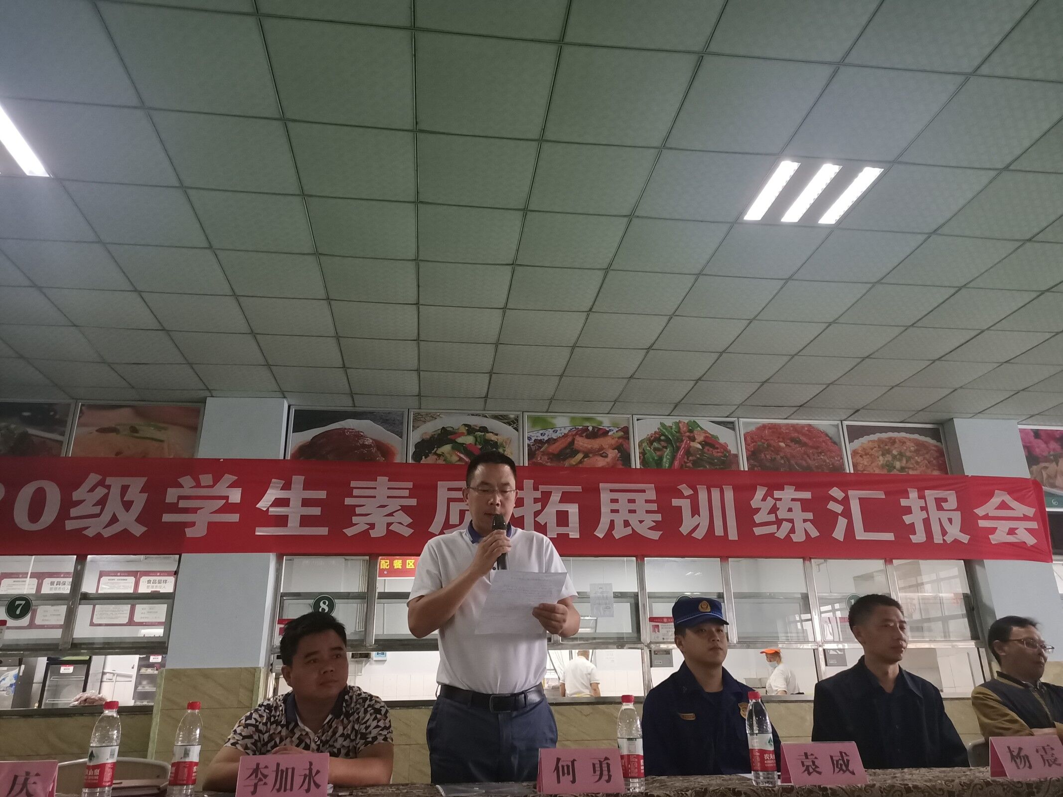 9月17日上午8点半,为期五天的2020级新生素质拓展训练动员会在食堂正式拉开帷幕。党委书记、校长杨震,党委委员、副校长伍银峰莅临现场指导,鼓励同学们要积极参加训练,要发扬吃苦耐劳的精神,圆满完成此次训练任务。