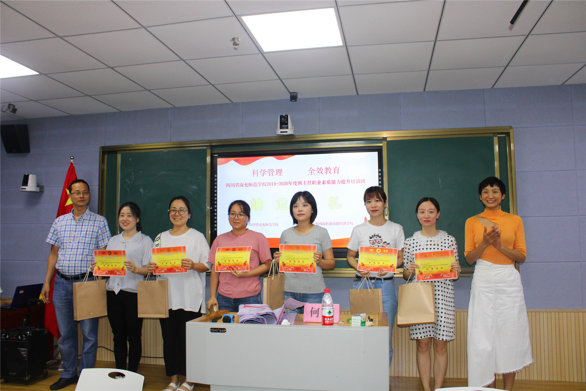 2020年7月22日下午17:00,四川省南充师范学校2019-2020年度班主任职业素质能力提升培训班结业典礼在四川省南充师范学校综合楼11楼会议室举行。本次培训班在四川省南充师范学校党政领导班子的亲切关怀和政教处及南充四海职业技能培训学校的精心组织下,60余名班主任参加为期4天的科学管理 全效教育——四川省南充师范学校2019-2020年度班主任职业素质能力提升培训班圆满结束。