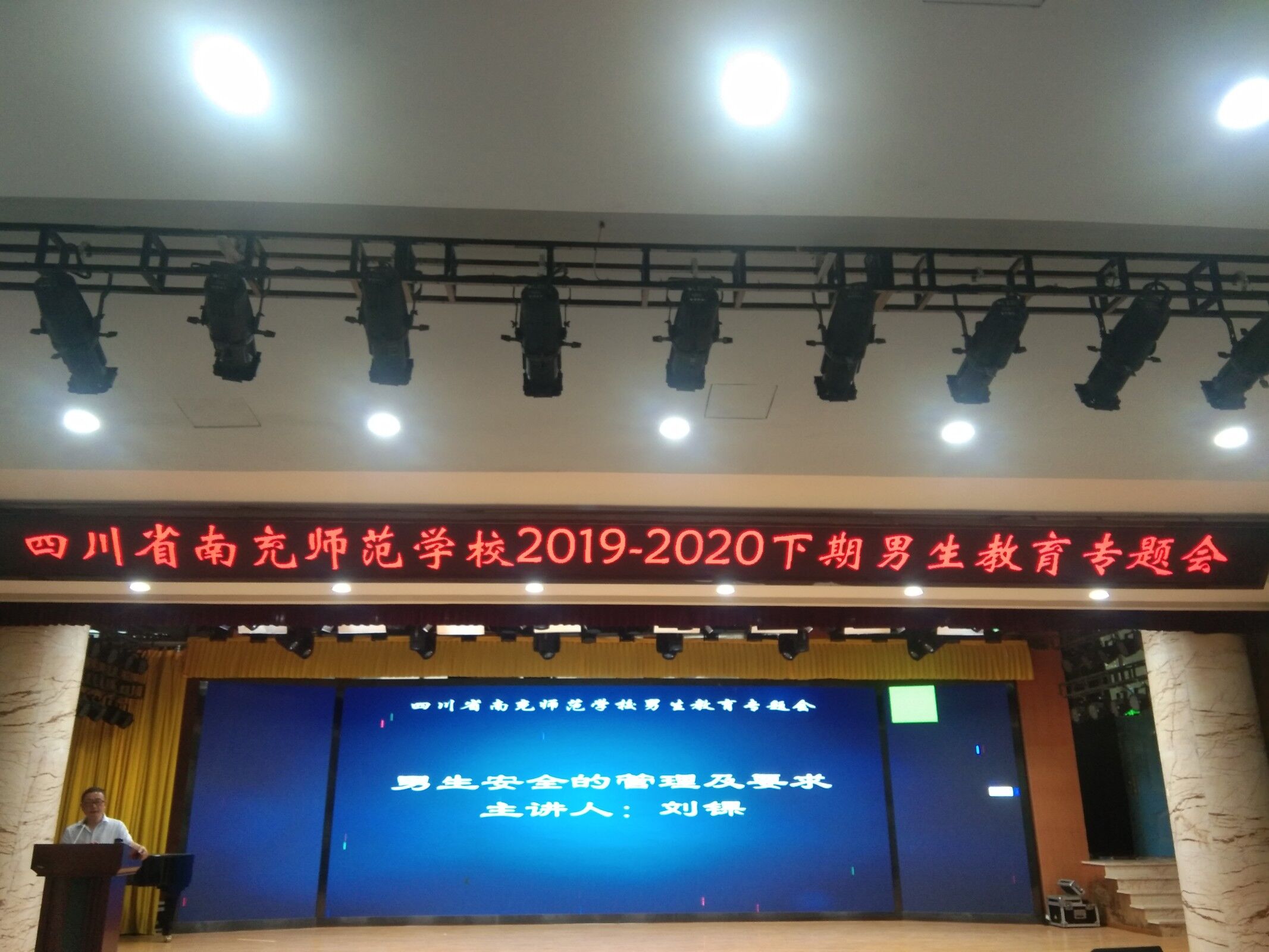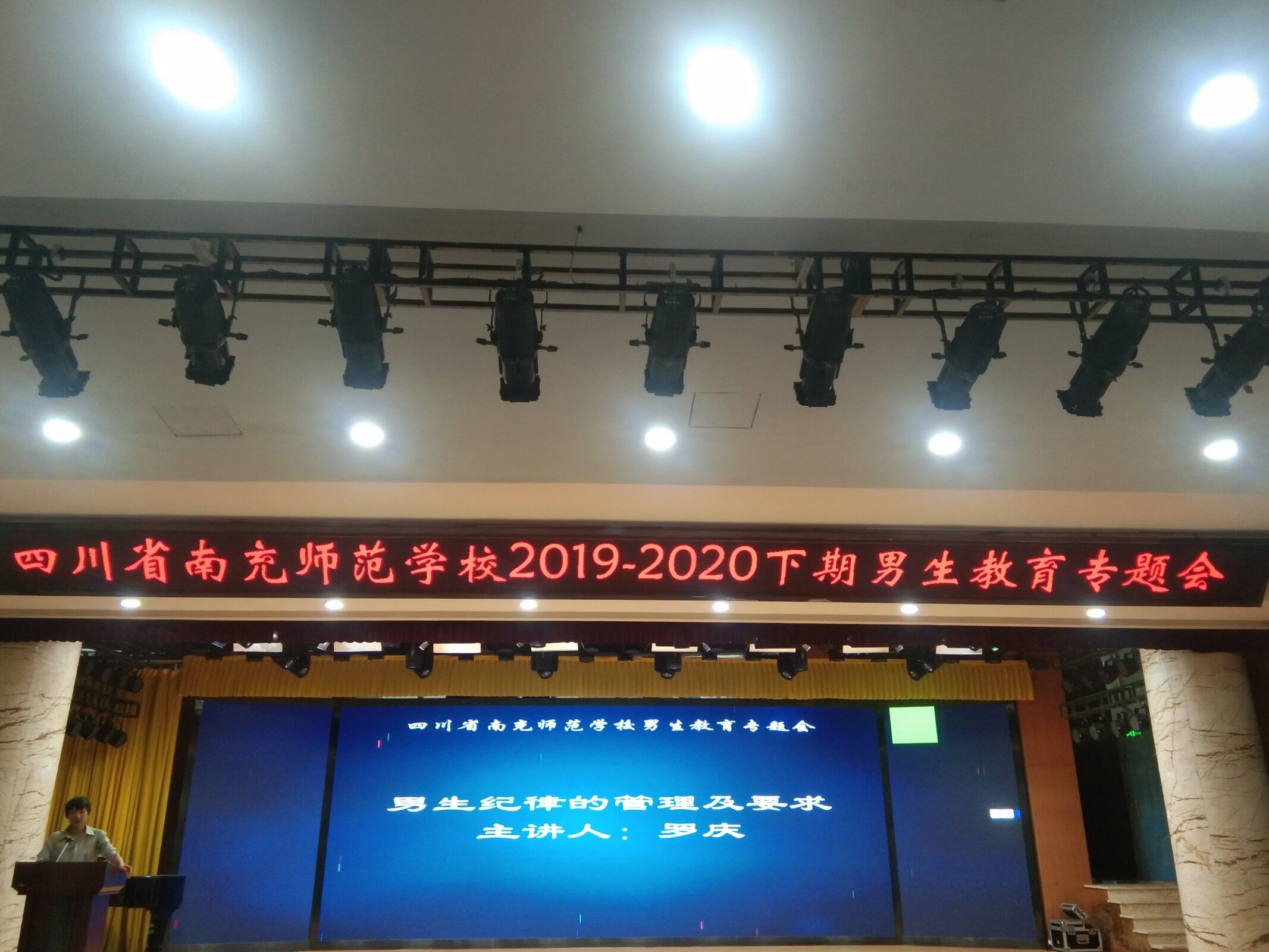 为了加强学生的安全教育与管理,进一步强化学生行为的养成教育,我校政教处联合保卫处于6月3日下午三点至六点在钢琴楼演播厅分两场对全校男生进行了专题教育。专题教育由保卫处主任刘锞和政教处副主任罗庆主讲,围绕男生安全和纪律两方面的管理和要求。