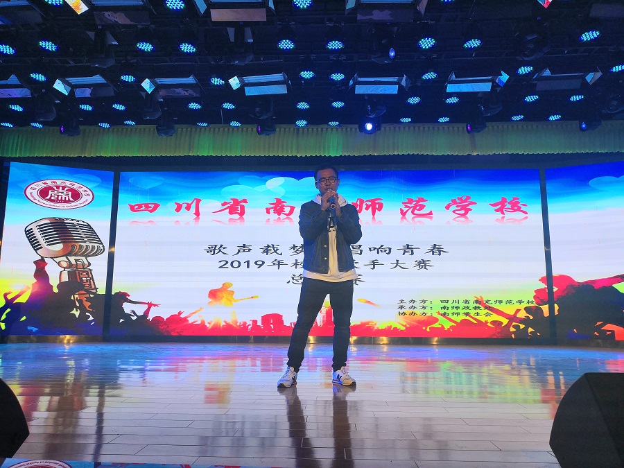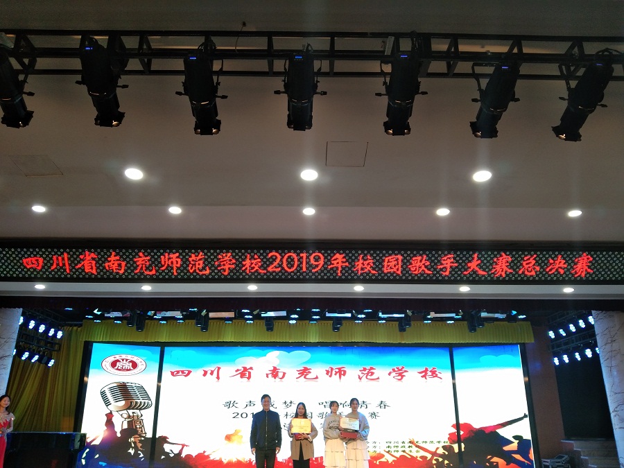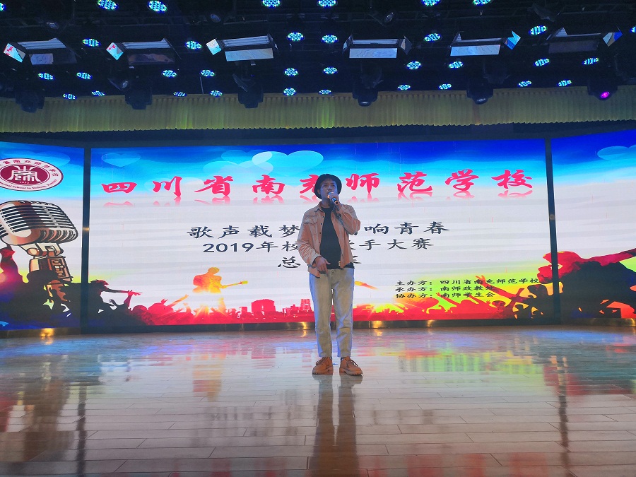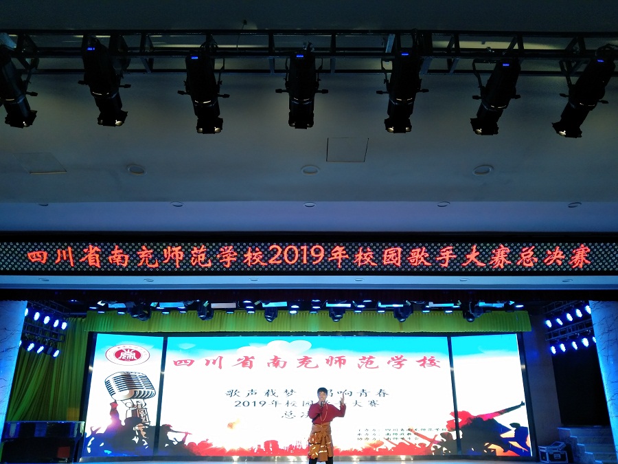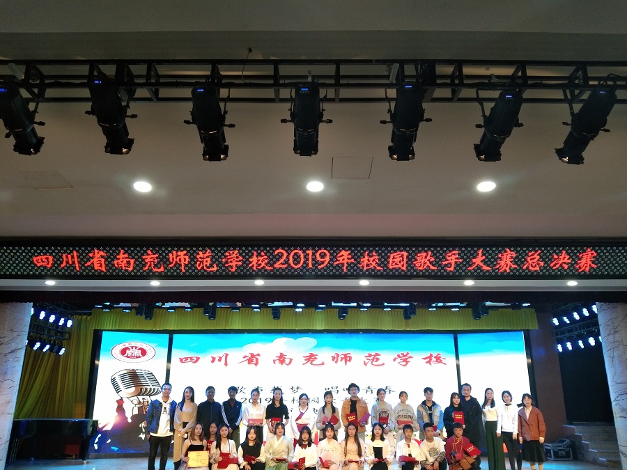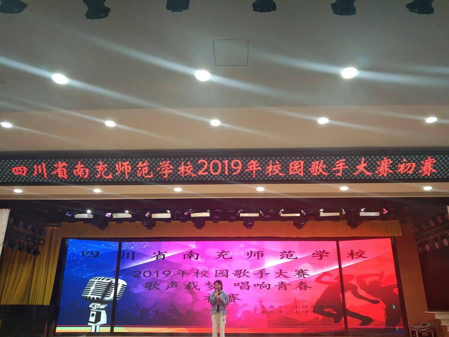 10月30日下午6点50分,我校在钢琴楼演播厅举办了“2019年校园歌手大赛”。音乐组唐民老师、刘倩丽老师、李玲老师、朱琳老师、蒲姝老师及17级年级组组长魏亚东老师担任本次大赛评委,政教处主任王勇、副主任罗庆、18级年级组长张潇老师、19级年级组组长李明静老师、各教学班班主任及各班学生代表共200余人观看了比赛。