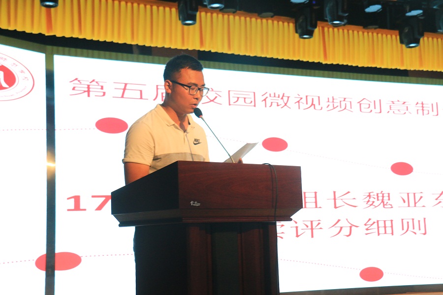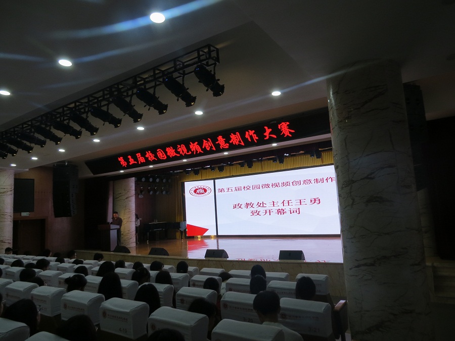 4月24日下午6点整,由政教处主办,学生会办公室承办的第五届校园微视频创意制作大赛在钢琴楼演播厅举行。共有来自全校各班的30名学生代表参加了本次比赛。政教处王勇主任、李明静老师、17级年级组组长魏亚东、18级年级组组长张潇、团委蒲霄汉老师,以及学生会主席王坤出席并担任本次比赛的评委。全校各班200余名班级代表到现场观看了此次比赛。