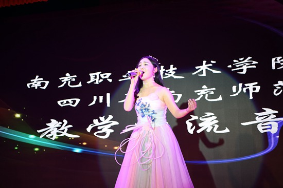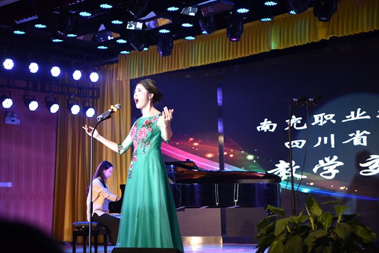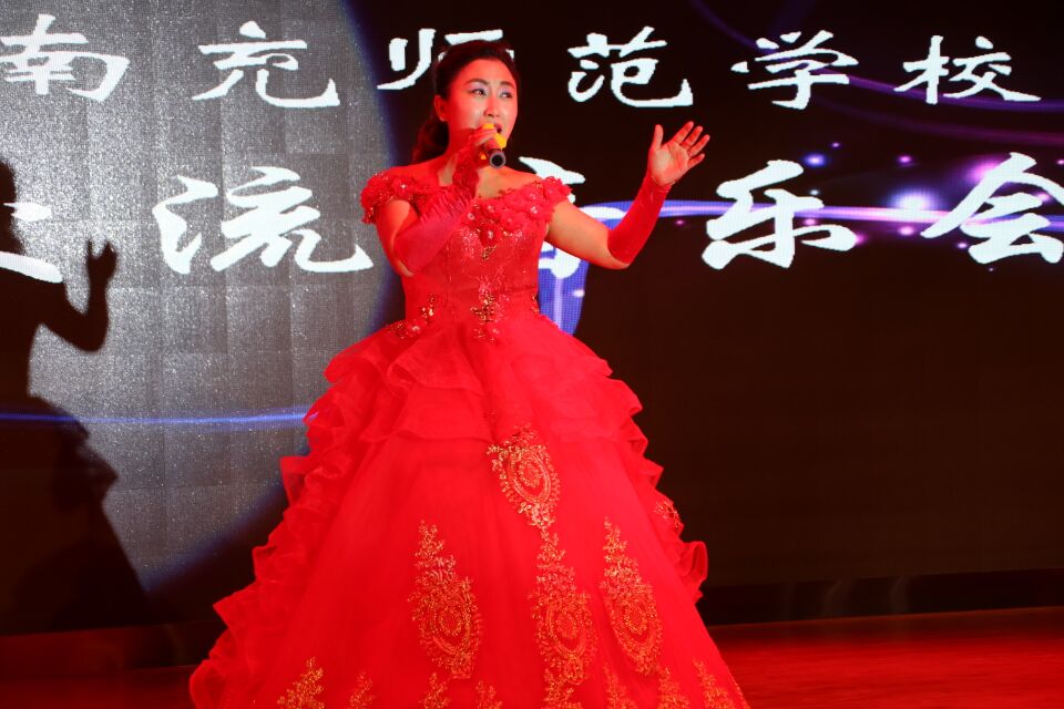 南充师范学校帅双萍老师,表演了女声独唱《黄河渔娘》、杨佳霖、何佳睿同学分别演奏演唱了《采茶扑蝶》、《晚风吹过哨卡》,黄楠、李梅、陶嘉露等同学演唱了女声表演唱《唱脸谱》。当晚南师校音乐厅内,一行行五线谱,好似五彩的飘带,装扮着美好的生活;一个个悠扬的音符,就像美丽的彩灯,闪烁着迷人的光辉;优美、动听的音乐,就像阳光和雨露,滋润着师生们的心田。