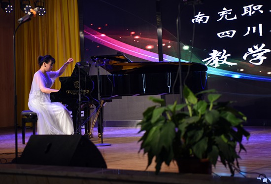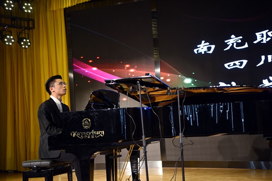 当天晚上,来自南充职业技术学院艺术系音乐教育专业的刘丽明、杨洋、余意雯分别先后登台演唱演奏了《茉莉花》、《千古绝唱》,《第15号匈牙利狂想曲》、《波兰舞曲》、《百鸟朝凤》等中外名歌和贝多芬、肖邦、李斯特、莫扎特等世界音乐大师的钢琴名曲。
