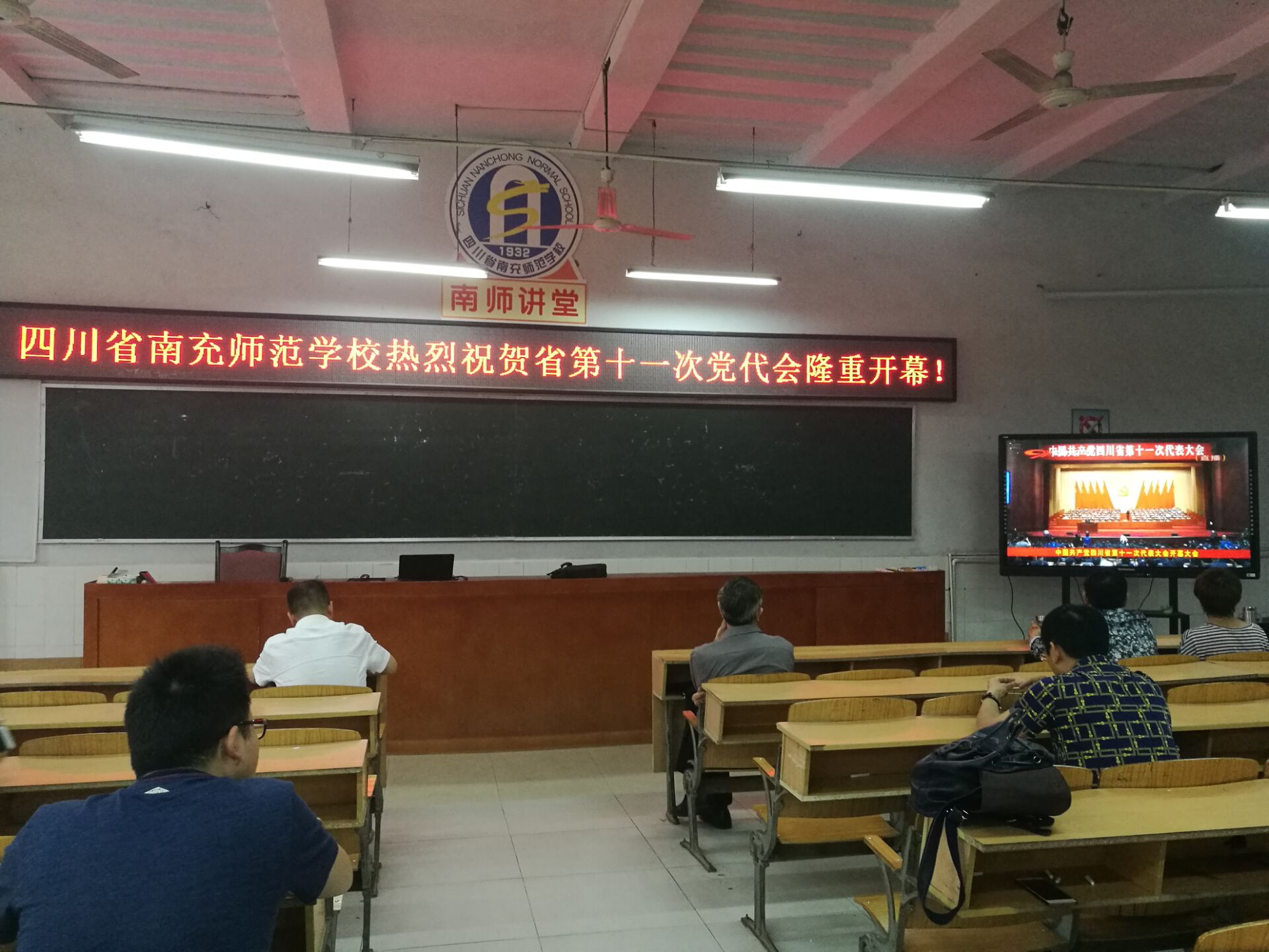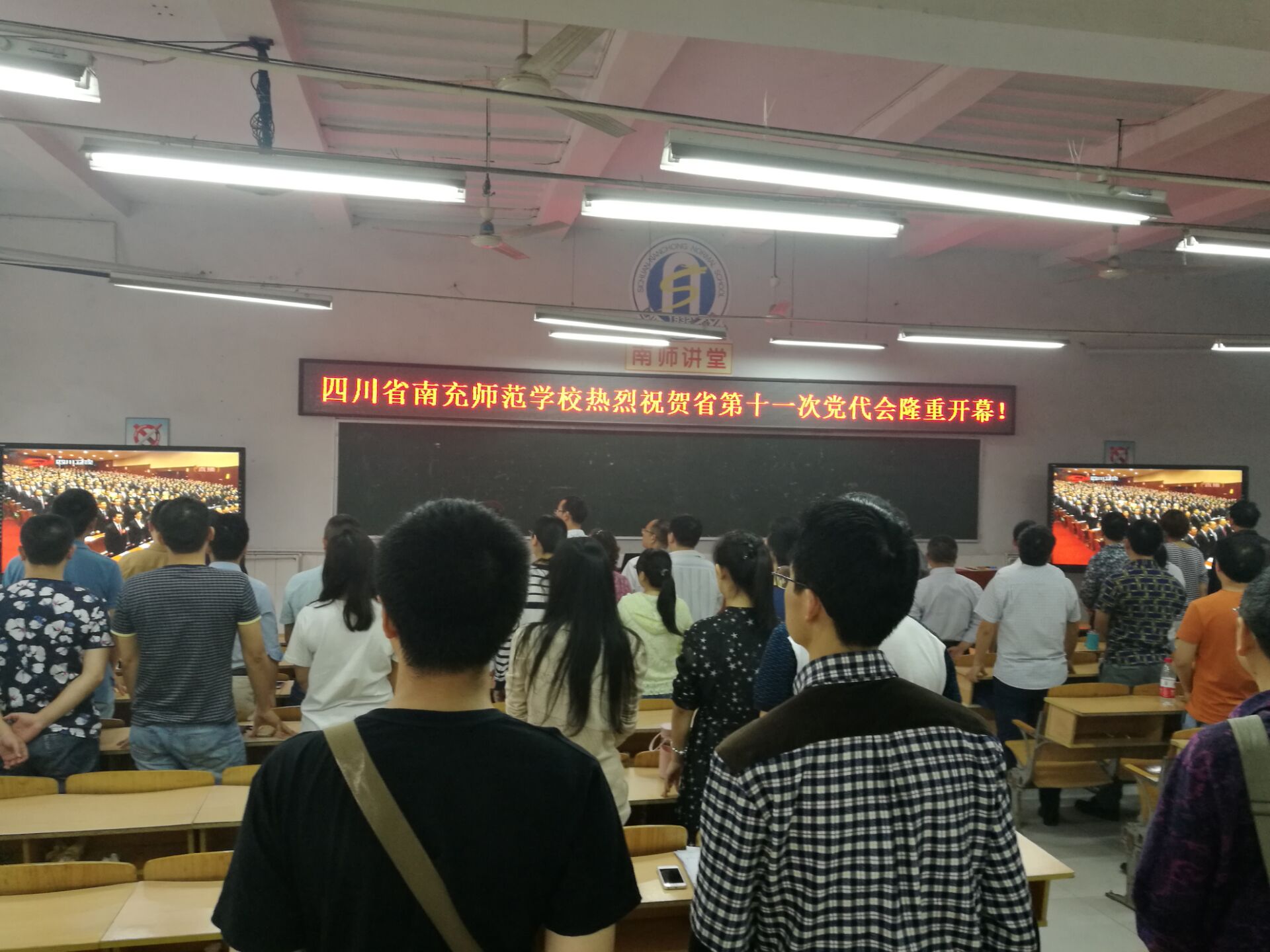 5月24日上午9时,中国共产党四川省第十一次党代会隆重开幕。四川省南充师范学校全体教职工在学校职教楼学术厅观看了开幕式,和全川人民一起,回望过去砥砺奋进、拼搏实干的五年,见证美丽繁荣和谐发展的四川,作为沐浴党恩、享受发展红利滋润的川人,我们集体为四川点赞!未来,在省委的领导下, 激扬斗志,奋发前行,为谱写中国梦四川篇章奉献南师力量!