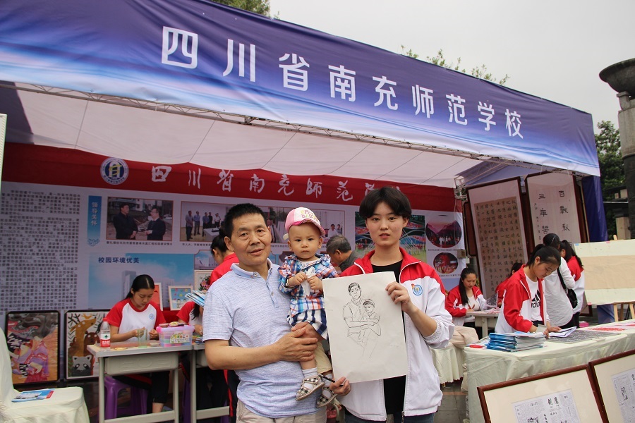在我校活动展区,也吸引了众多市民驻足观看,在绘画创作展台,不少市民亲身加入到绘画的创作当中,在2014级7班张爽同学的素描笔下,一幅幅栩栩如生的人物肖像跃然纸上,赢得了现场市民的连声称赞:“画的太好了,我很满意,学校教的好嘛,学生也是下了功夫的”。