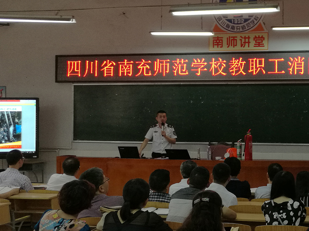 7月1日上午,四川省南充师范学校在职教楼学术厅对全体教职工进行了消防安全知识培训,培训会由保卫处刘锞副主任主持。