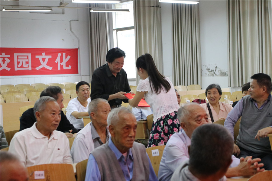 行政办主任也向全体退休教师表达了节日的祝福,请求大家继续关心支持学校发展。会上,伍主任宣读了“工作30年乡村教师”表彰决定,并和万主任一起为受到表彰的老师颁发了荣誉证书。