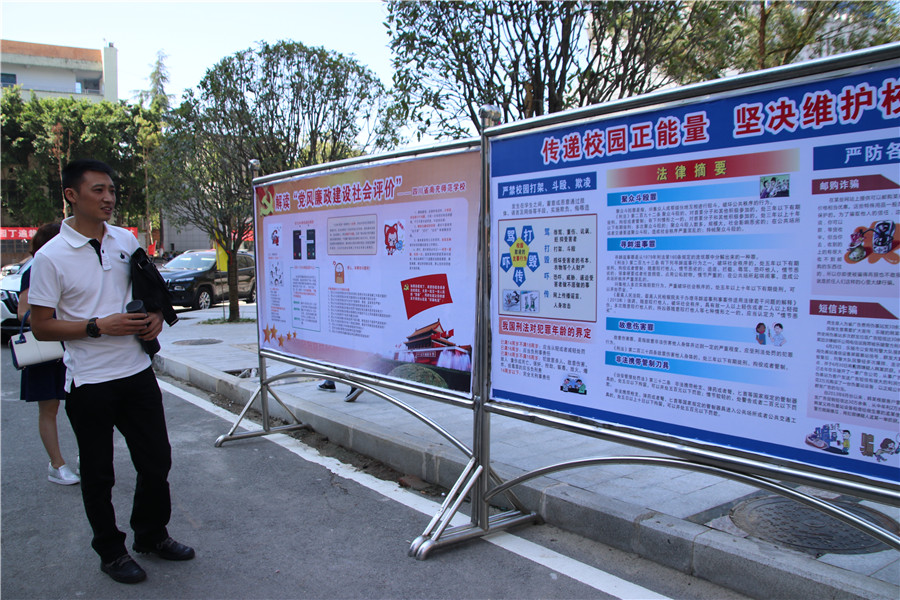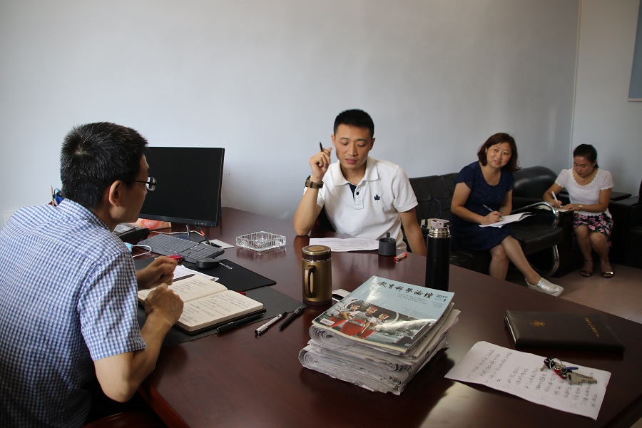 在校长办公室,任主任、胡书记主题鲜明地就我校党风廉政建设社会评价工作进行检查。任主任首先听取了何校长关于学校党风廉政建设社会评价工作的专题汇报,并按照《南充市党风廉政建设社会评价工作督查清单》逐项了解情况,随后根据学校提供的通讯录,随机拨通了几位教职员工的电话,询问学校在社会评价方面所开展的工作。