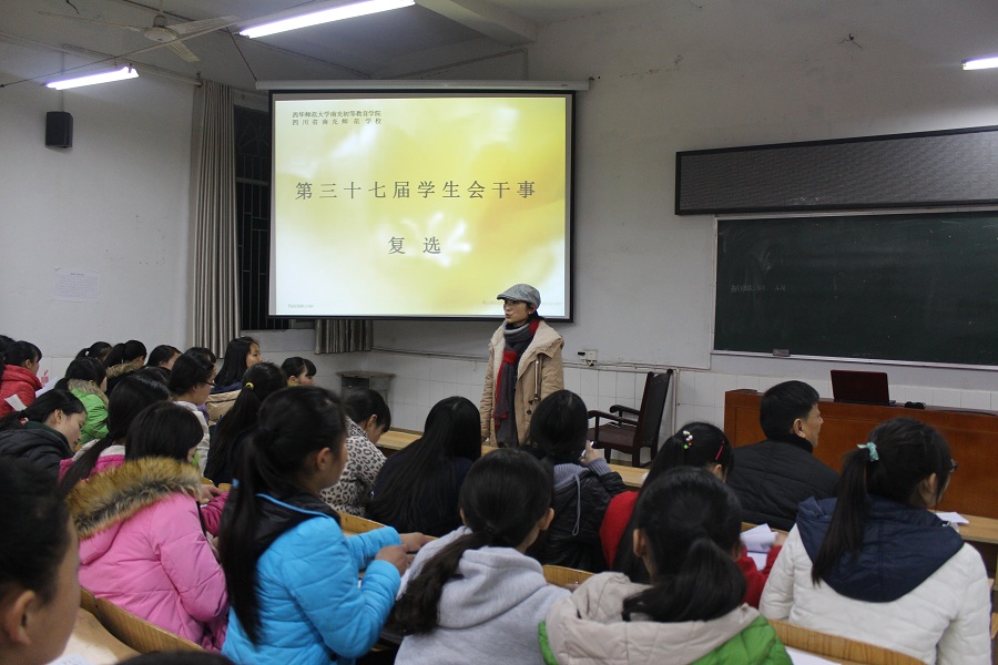 我校于2015年1月16日晚7:30分在职教楼学术厅召开了学生会工作总结大会暨新一届学生会干部复选。