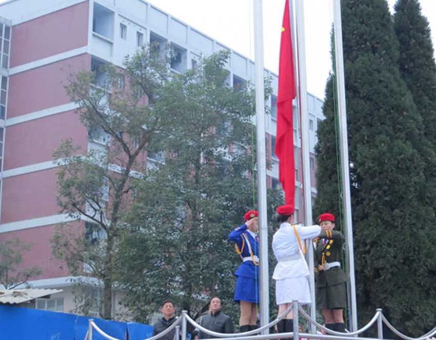 在全校师生深深的注目下,身姿矫健的女子国旗班战士踏着整齐的步伐护送鲜艳的五星红旗入场,伴随着全校师生齐唱国歌,五星红旗冉冉升升起。进行了庄严的升旗仪式以后,肖宜军老师就第十五周值周工作情况作了总结发言:1、师生出勤情况良好,教育教学秩序井然,大多数同学都能严格要求自己;2、校园学习气氛浓厚,同学们每天都能按时到教室学习、到琴房练琴;3、清洁卫生和归寝情况良好,;4、同学们遵守学校规定按要求充电,不使用大功率电器。并提出一些建议和措施:1、同学们要加强安全和节约意识,不使用大功率电器,离开寝室、教室一定要锁门。;2、各班班主任要对上课时间留宿寝室学生进行认真清点和批评教育;3、各班要进一步强化专业学习,有效组织学生练习三笔字、弹钢琴等技能训练;4、希望在教学、出勤、清洁、弹琴、纪律、文明用电等方面做得好的班级再接再厉,继续保持,继续起好带头作用。