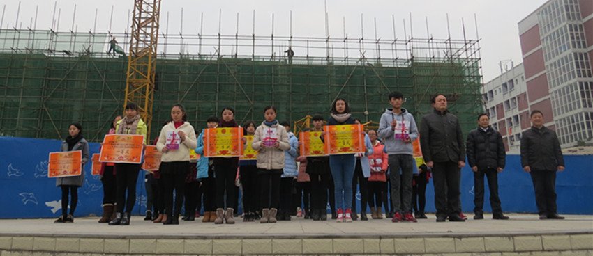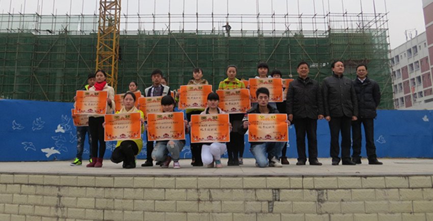 我校副校长李长江、政教处主任王勇、教务处主任何世林为获得荣誉的班级和个人进行颁奖