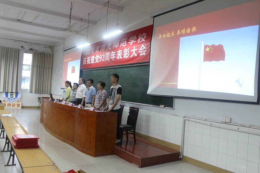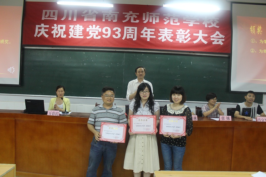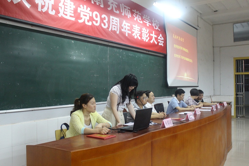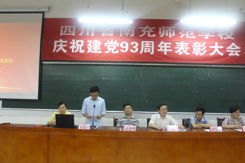 6月26日晚上,我校全体党员和民盟成员在职教楼学术厅共同参加了庆祝建党93周年表彰大会。大会由学校党办主任万彩霞同志主持召开。