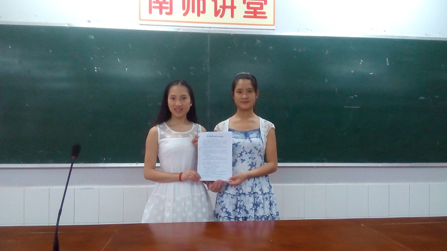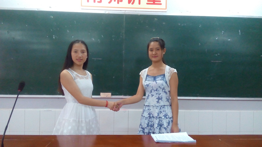 (第36届学生会主席李欢与第37届学生会主席徐凤做交接工作)