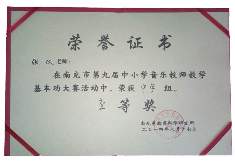 热烈祝贺南充师范学校青年教师张双荣获南充市音乐教师教学基本功大赛一等奖