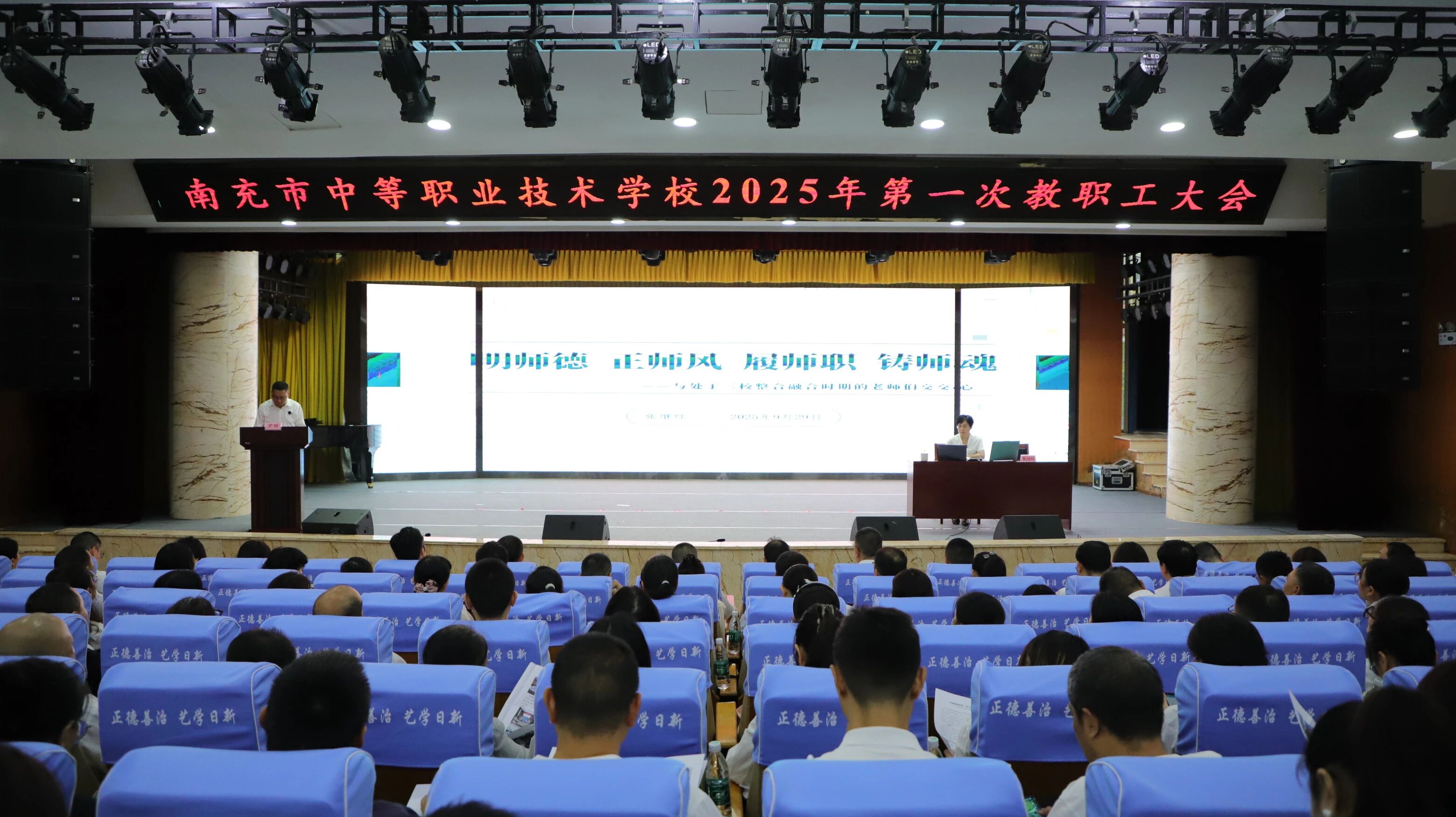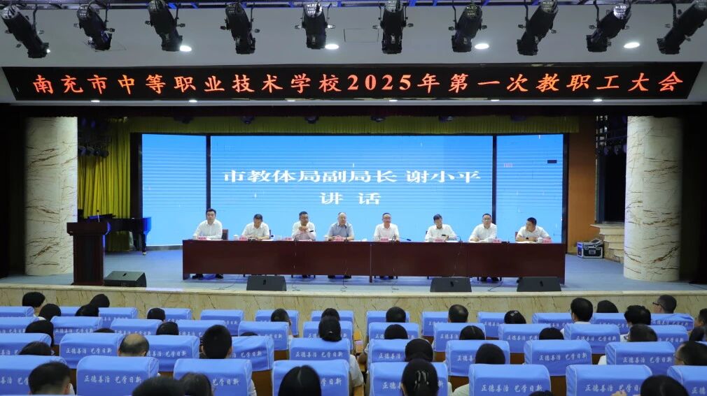 此次大会,是一声凝聚共识、汇聚合力的铿锵号角,更是一曲启航新程、催人奋进的激昂战歌!站在崭新的历史起点,南充市中等职业技术学校的全体教职工已然整装列阵,目光如炬,心火如燃。我们必将以此为翼,乘风而起,以同心共筑伟业,以实干开创未来,携手谱写学校融合跨越、高质量发展的壮丽新篇!