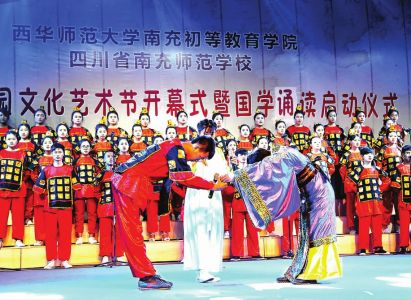 5月18日晚,南充师范学校第三届校园文化艺术节开幕式暨国学诵读启动仪式在学校运动场举行,全校4000余名师生参加了开幕式。广大师生载歌载舞,用丰富多彩的艺术形式,张扬个性,展示“南师”师生才艺。