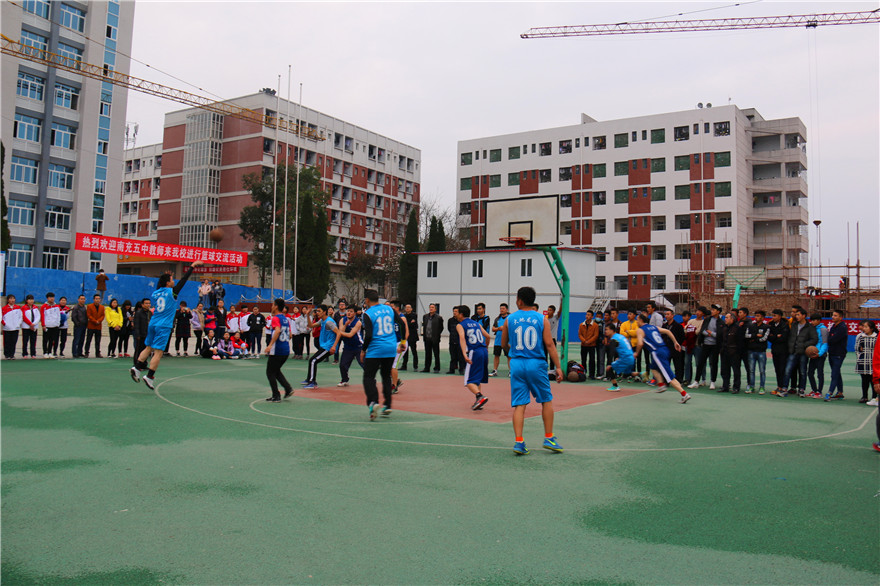 3月10日下午5时,南充五中的教师篮球队在张涛副校长和杨朝辉副书记等领导的带领下来到我校,与我校教师篮球队进行了一场精彩的篮球友谊赛。