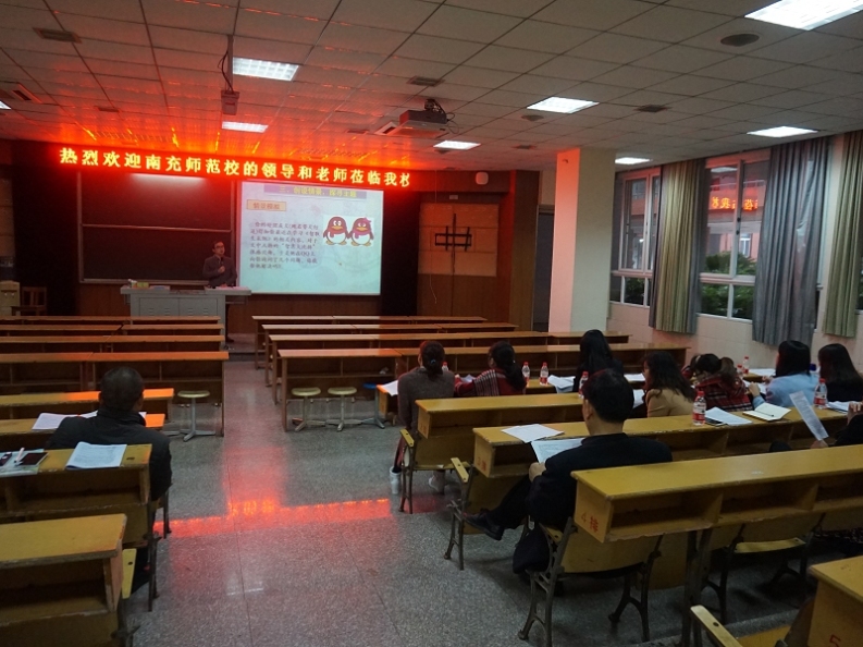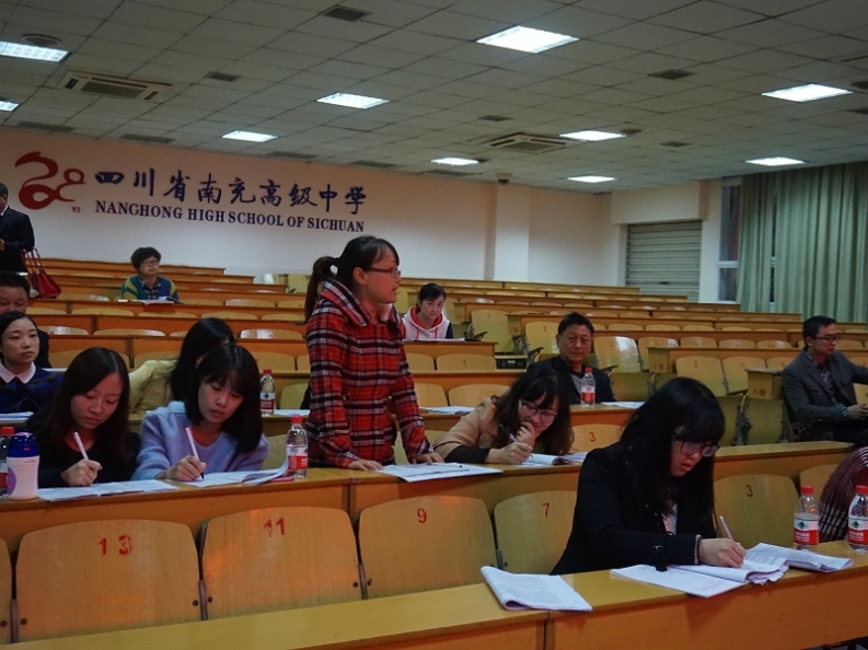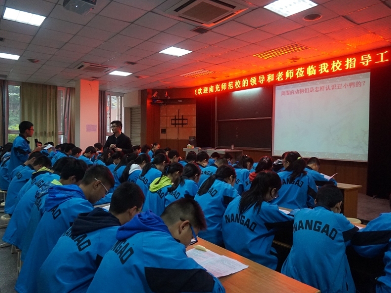 我校语文组全体教师来到了南充高级中学(嘉陵校区)阶梯教室。在这里,观摩了该校覃君老师的示范课《丑小鸭》,并认真聆听了肖光伟老师的说课《智取生辰纲》。