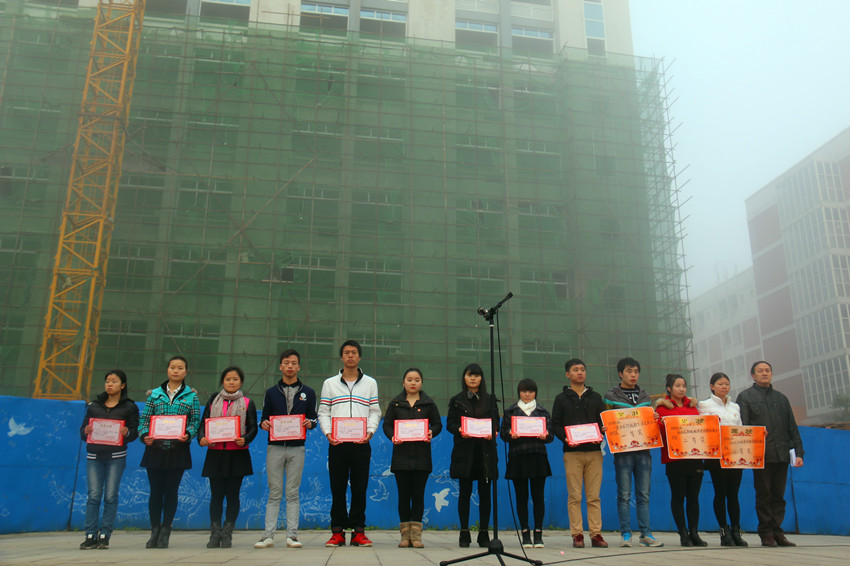 最后体育组魏亚东老师宣布了南充师范学校2015年学生广播体操和健美操比赛获奖名单:2012——2014级小教专业体操比赛获奖班级:一等奖:2012级2班;二等奖:2012级1班,2014级1班;三等奖:2012级5班,2014级2班,2014级3班;2012——2014级幼教专业健美操比赛获奖班级:一等奖:2012级7班,2014级17班;二等奖:2012级6班,2014级10班,2014级12班;三等奖:2013级5班,2014级13班,2014级5班,2014级15班。本次大赛全面推进了素质教育,增强了学生的集体主义观念,培养了学生顽强的意志品质。