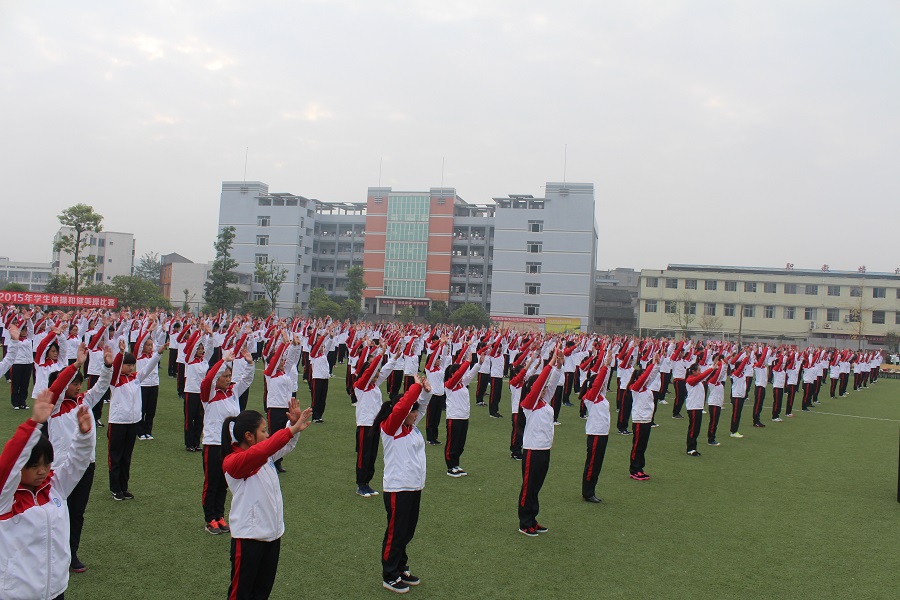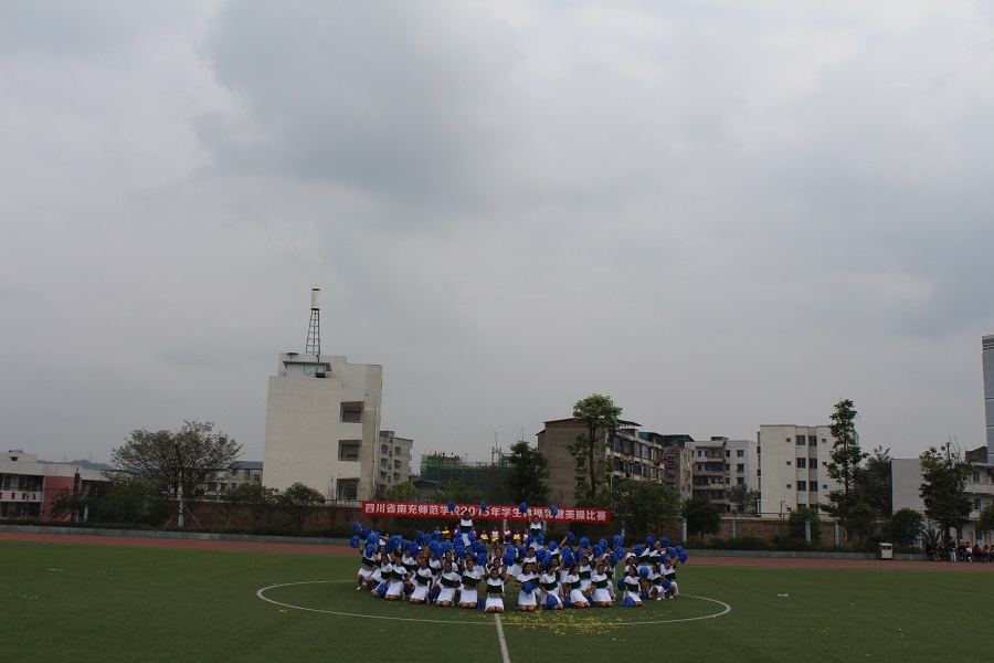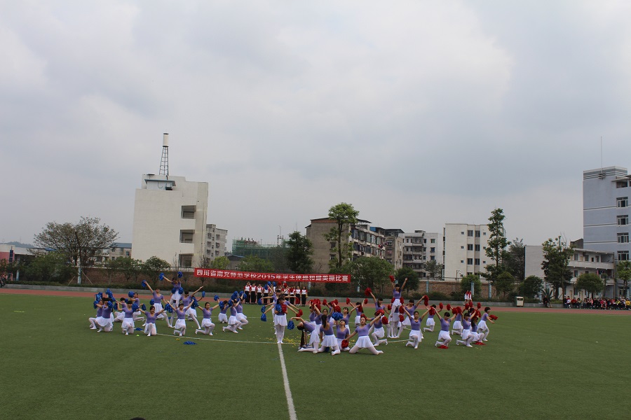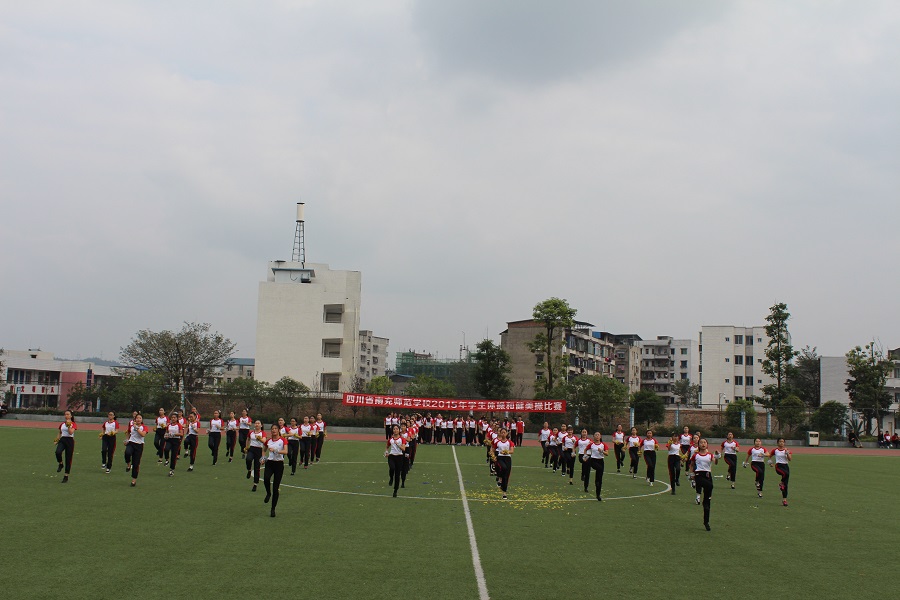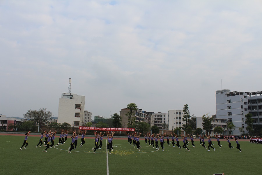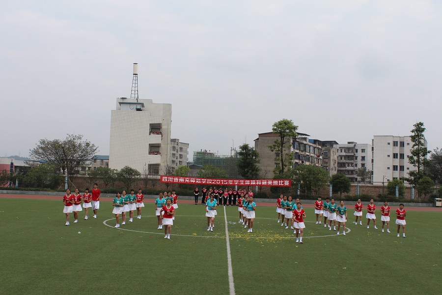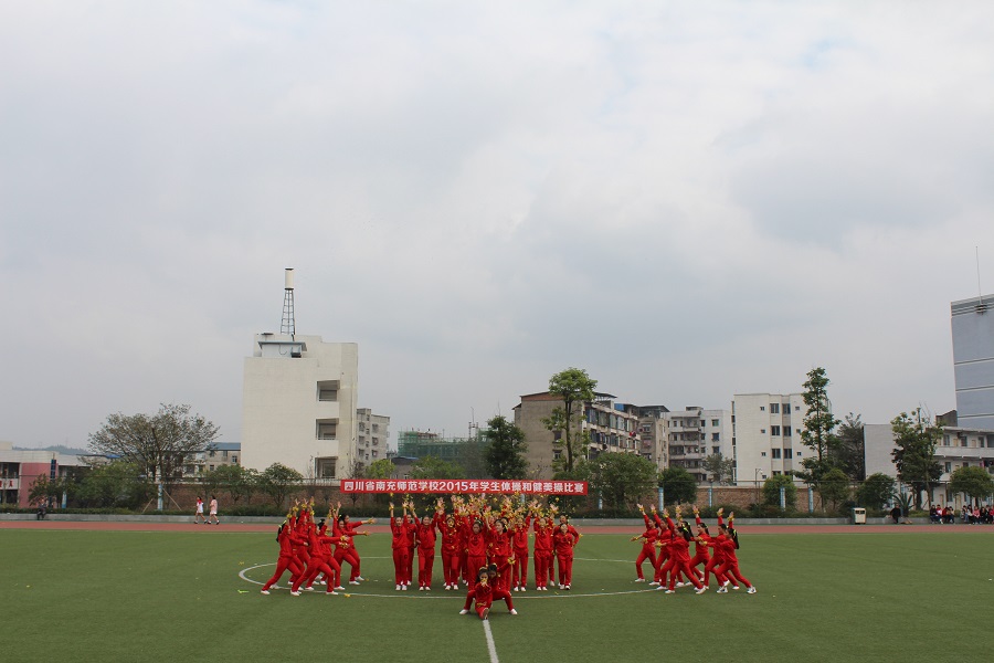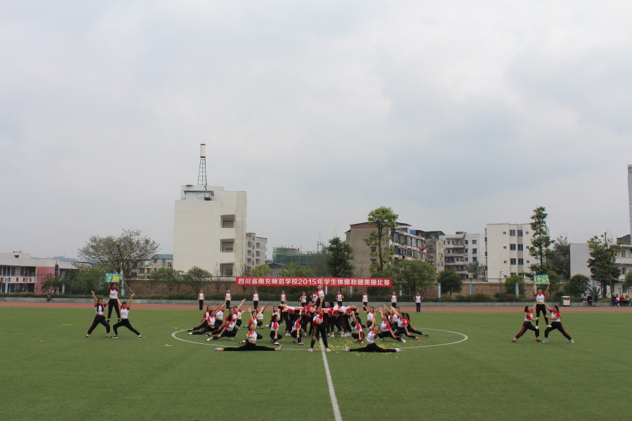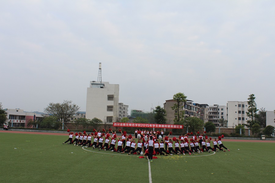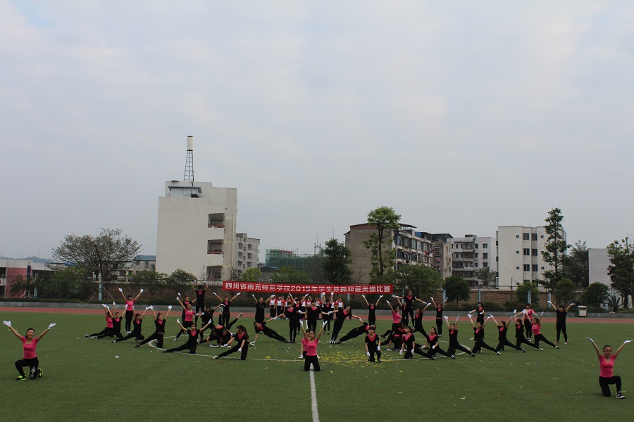 为了全面推进素质教育,增强学生的集体主义观念,培养学生顽强的意志品质。我校于2015年11月20日上午9:00—12:00,下午14:30—18:00在足球场举行了南充师范学校2015年学生广播体操和健美操比赛。