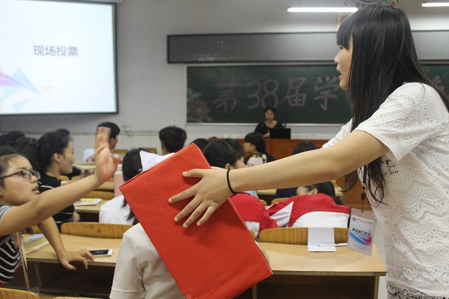 为给学生会干部队伍注入新鲜血液,传承学生会工作的先进性,我校政教处于2015年6月16日晚7:30在职教楼学术厅举行了“第38届学生会换届选举”活动。