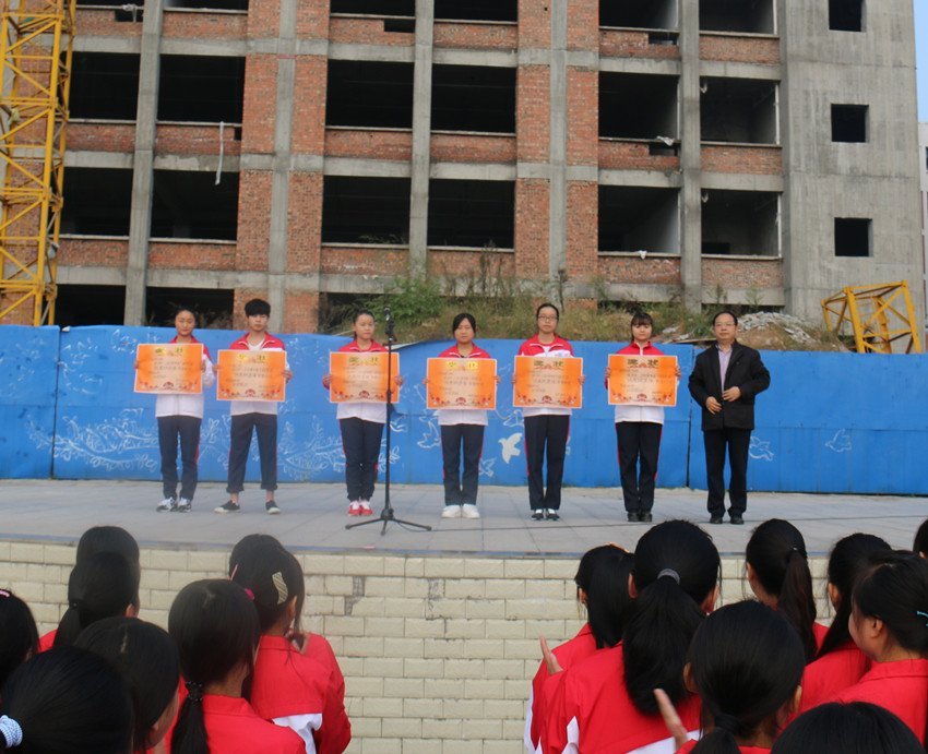 随后,由李长江副校长宣布优秀班集体获奖文件,他们分别是由张地洪老师带领的2012级1班、董小柏老师带领的2012级2班、张姝老师带领的2012级6班、蒲霄汉老师带领的2014级7班、肖宜军老师带领的2014级10班、高灵老师带领的2014级15班,荣获2014——2015学年度“优秀班集体”荣誉称号,接着由蔡礼儒校长为获奖班级颁奖,这是学校对班主任工作和学生在校表现的肯定,激励着全校师生共同奋斗,争创优秀班集体。