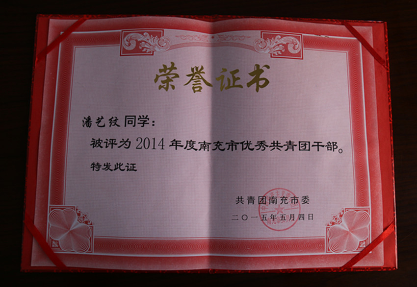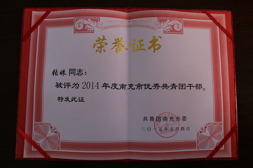 张姝同志和潘艺纹、陈亚玲同学被授予“南充市优秀共青团干部”荣誉称号