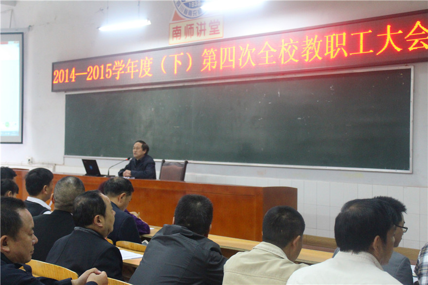 2015年4月22日16:30,学校在教职楼学术厅召开了全校教职员工会议。