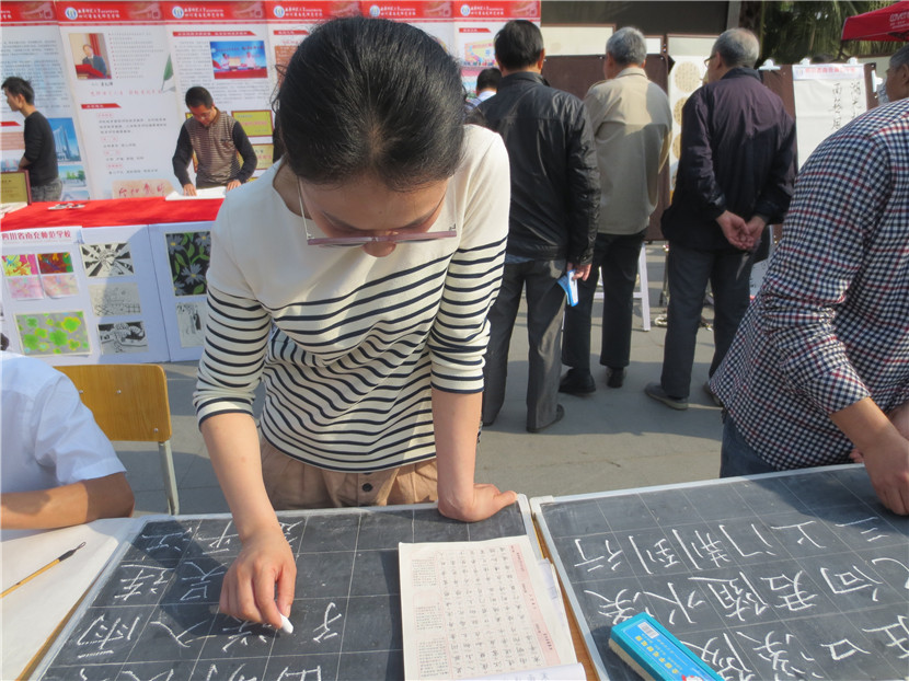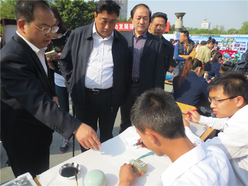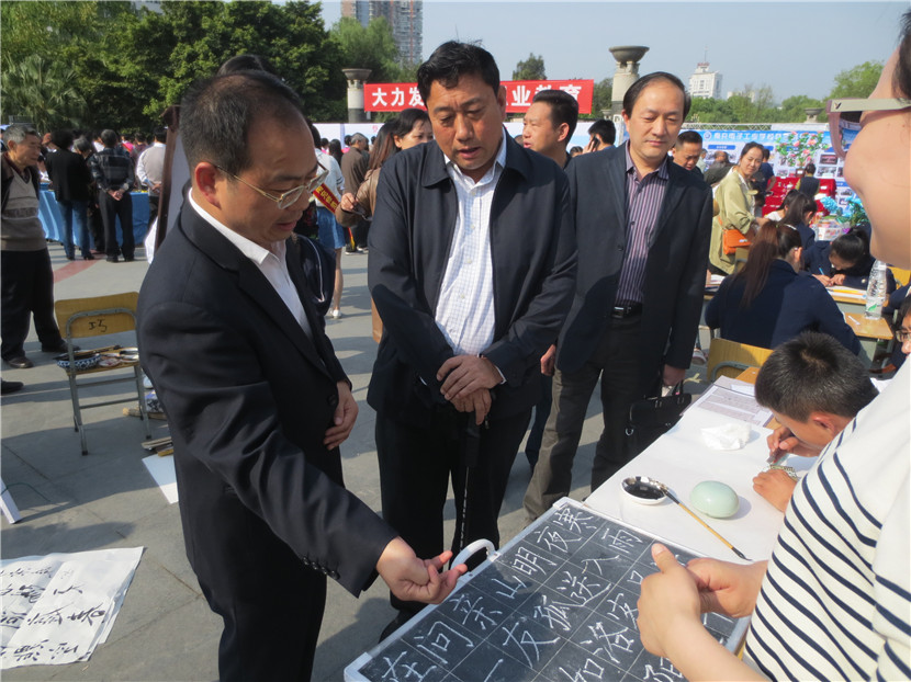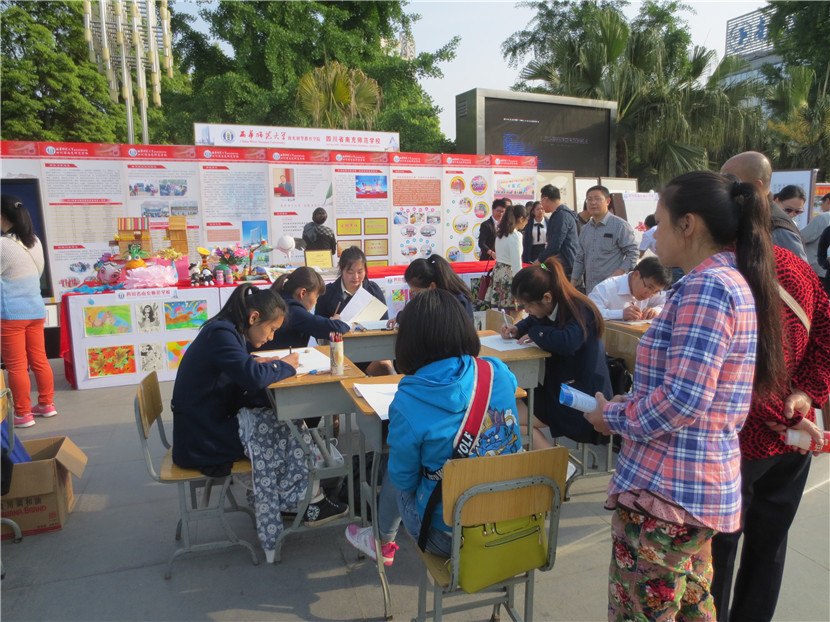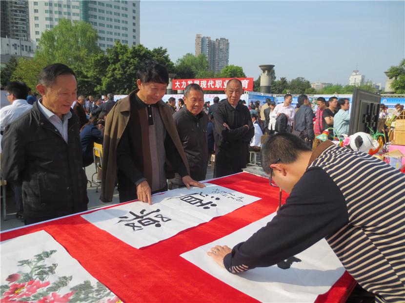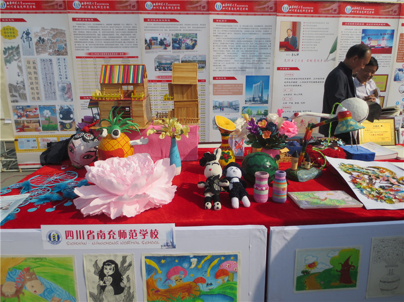 4月14日,我校组织23名学生、15名教师参加了南充市教育局主办的“职业教育成果展示”活动,学校党委领导亲自带队。当日,共有16所学校参展,声势浩大,热闹非凡。我校派出的现场书法、绘画、手工制作、礼仪、教师等五支分队各显神通、表现优异,用他们精湛的技艺、独特的气场、亮眼的作品、热情的交流吸引了大批学生、家长驻足观看,还有很多市民索要作品,咨询如何到学校就读等问题,无形中给予了师生强有力的鼓励。展板、展台、展出的各类作品也是我校此次展示活动人气大增的法码,它将近年来我校职业教育的成绩、成果以最直观的形式展示在兄弟学校以及市民面前。副市长单木真、市教育局雷局长、邓局长、曹科长等都亲自前来我校展台参观,并充分肯定了我们的教育教学成果,同时还就提升学校品质、未来发展等进行了沟通交流,提了许多宝贵的建议。