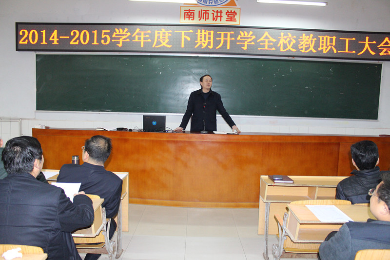 下午3:00,我校2014-2015学年度下期全校教职工大会在教职楼学术厅召开,全体教职员工参加了会议。