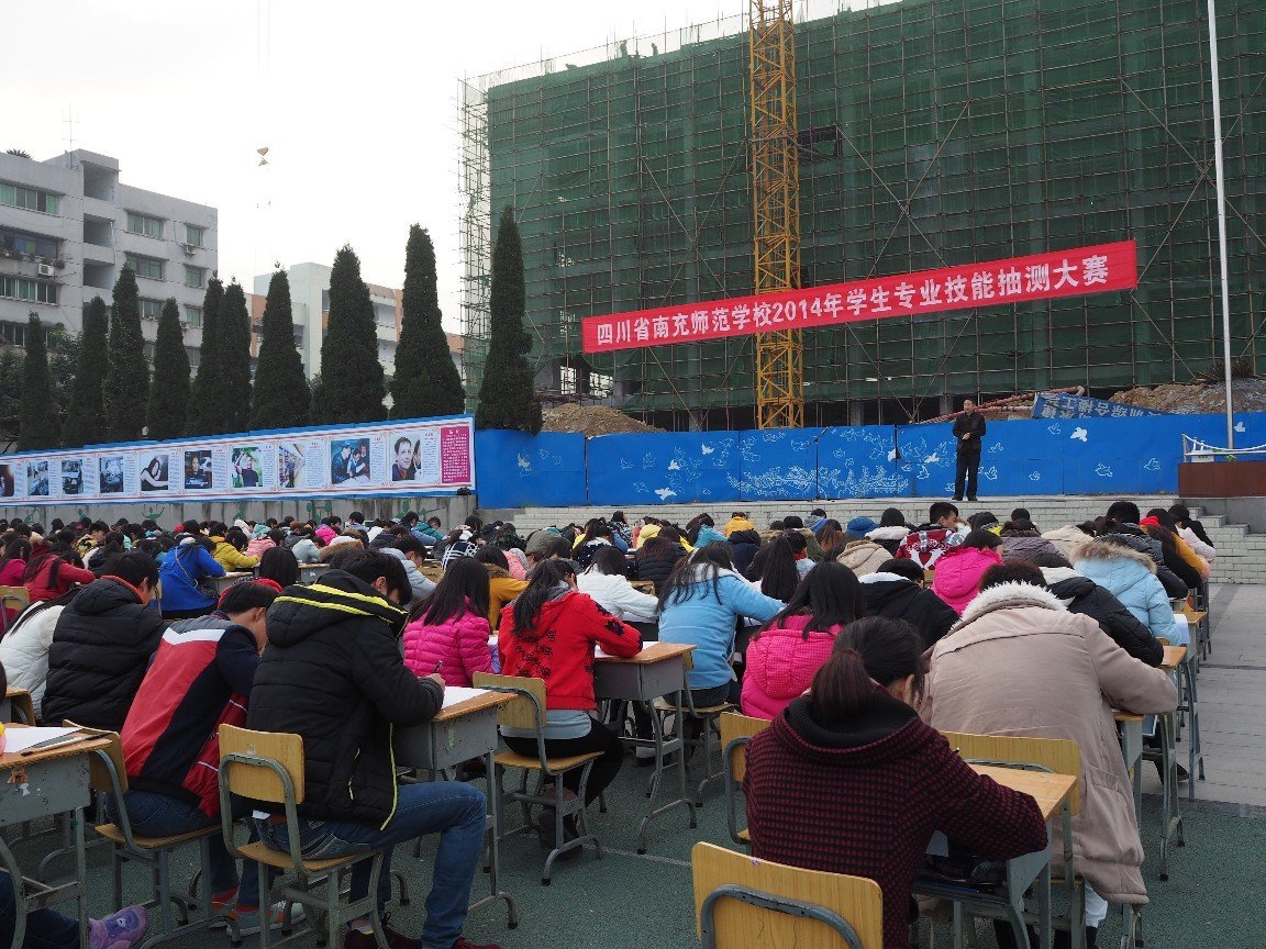 2014年12月29日、30日下午,我校在运动场举办2014-2015学年上期学生技能抽测比赛之―——学生三笔字和简笔画大赛。全校共430人参加了此次大赛。。比赛在紧张有序的气氛中进行,参赛选手认真谨慎,各显其能,挥洒笔墨,参赛班级的其他同学在操场周围观看欣赏。我校一向重视学生基本功训练工作,不仅按教学大纲的要求开足开齐所有基本功课程,还在基本功的学习指导上加大训练力度,经常开展多种形式的比赛活动,以检验教学效果,激发学生的学习兴趣,不断提高各项技能水准。经过此次大赛,充分展示了我校学生的专业基本功水平和职业技能水平。