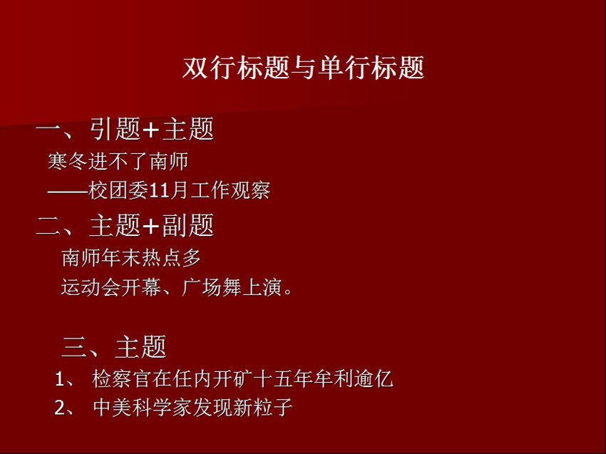 7:40,语文组曾理老师以"人中吕布"的小故事为在场的的干部阐述应用文写作是培养文学质的基本功。随后,就他从文学的学习经验及新闻写作要点做了以下几点讲述:(一)应用文写作。在文学学习中最基本的,最重要的写作。其作用为:1.指导与规范2.宣传与教育3.交际与联系4.凭证与依据。在对事物推广先进知识,进行舆论的同时也要抓住以下几个特点:1.实用性2.规范性3.真实性4.平实性5.时效性6.客观性。(二)新闻写作——消息。1.以标题,引题,主标题,副题来给同学们最重要,最新鲜,最关心的话题进行核心阐述。2.导语—立片言以居要。它的主要为作用是彰显新闻价值,结合新闻事件的背景,对这些要素反复比较、鉴别再经过一番审视的衡量后才确定把其中的一二个要素作为先导要素。接着,曾理老师也对广播稿,总结的注意事项进行了一系列讲述,让同学们受益匪浅,同时也激发了同学们的写作兴趣。最后,曾老师对学习应用文写作方法进行了以下总结:端正写作态度,熟悉目的方针,扩大信息贮存,重视基本功,模仿为建设。