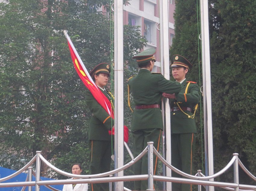 在全体师生的注目下,英姿飒爽的国旗班战士迈着整齐的步伐护送着鲜艳的五星红旗入场,伴随着雄壮的《义勇军进行曲》奏响,五星红旗冉冉升起,朝会第一项升旗仪式结束。随后,党委办公室主任万彩霞就上周值周情况进行了总结发言:1、学校教育教学工作秩序井然,各项工作有序推进。2、星期二下午,学校在职教楼学术厅召开党的群众路线教育实践活动总结大会,市委第14督导组莅临指导工作,对我校开展党的群众路线教育实践活动的成效予以了高度的评价,就工作中的不足提出了改进建议,学校围绕今后党政工作发展做出了详细规划。同时,政教处组织全校纪律委员在职教楼学术厅召开了“纪律委员会议”,就班级纪律管理进行了细化安排。3、星期三下午,校团委组织开展了以“拾悦记忆”为主题的社团联谊活动,晚上,团委干部到各团支部进行了招新宣传,同时,学校对各类安全隐患进行了深入排查并就消防器材使用进行了培训。4、星期四晚上,学校组织全体成人教育学生在职教楼学术厅召开了“成人高考会议”,就考试各项工作进行了细致安排。5、星期六,校团委组织青年志愿者协会与部分社团干部,到南充市第一福利院进行了爱心慰问。晚上,组织跆拳道协会在职教楼学术厅开展了“跆拳道电影放映会”。6、星期六—星期日,学校组织学生参加了成人高考。