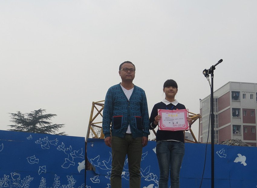 总务处刘毛主任为蒋静同学颁奖