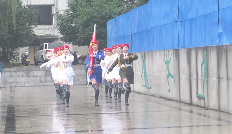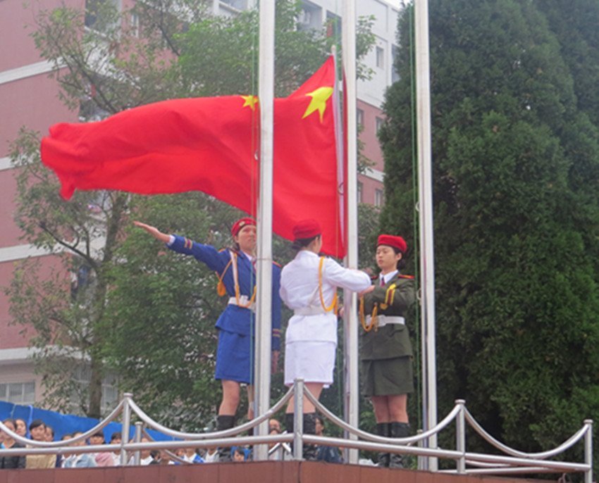 伴随着五星红旗的冉冉升起,朝会第一项升旗仪式结束。随后,政教处副主任罗庆就上周值周情况进行了总结发言:1、学校教育教学工作秩序井然,各项工作有序推进。2、星期二下午,由南充市老科协、关工委主办,我校承办的“热爱祖国 梦想成真”主题报告会在职教楼学术厅成功举行;3、星期三下午,政教处在职教楼学术厅组织召开学生干部会议;同时,学校在职教楼二楼会议室召开教研组长会议,就近期各项教学工作进行了细化安排;4、星期四下午,学校在职教楼二楼会议室召开毕业班考试科目教师会议,就“教师资格证考试课程、教师公共基础知识”等任课教师教学工作提出了具体要求,同时,学校在职教楼学术厅召开安全工作会议,围绕学校各项安全工作进行了认真部署;5、星期五下午,政教处在职教楼学术厅组织召开全校班主任会议。晚上,校团委在职教楼学术厅召开了团支部干部会议。6、星期六—星期日,学校组织学生参加了高等教育自学考试。