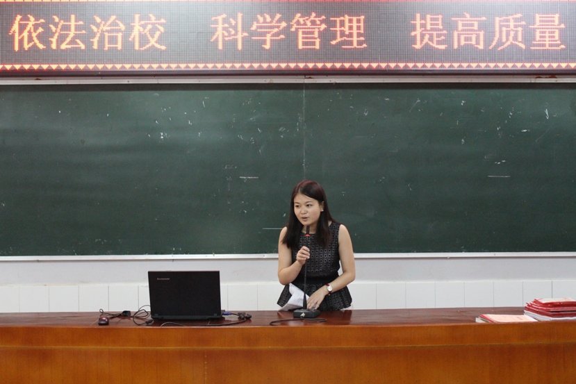 接着,蔡礼儒校长向全校教职工通报了学校基建项目的进展情况和党的群众路线民主生活会推进情况,介绍了我校教师参加国培、省培情况以及学校成功申报市级示范学校和积极筹备申报省级示范学校等相关情况。最后,蔡校长对全体教职工提出了具体要求和希望:1、自觉遵守劳动纪律,按时上课和上下班;2、教师要充分准备每堂课,每堂课要有计划、教案;班主任要认真负责,引导学生在专业技能上下工夫;3、教师要关注贫困学生,关心学生心理健康,关心学生人身安全;4、每位教职工要自觉维护学校形象,为学校发展献计献策,积极传递正能量;5、教师要多学习、多充电、多听课、多反思,努力提高教育教学技能。