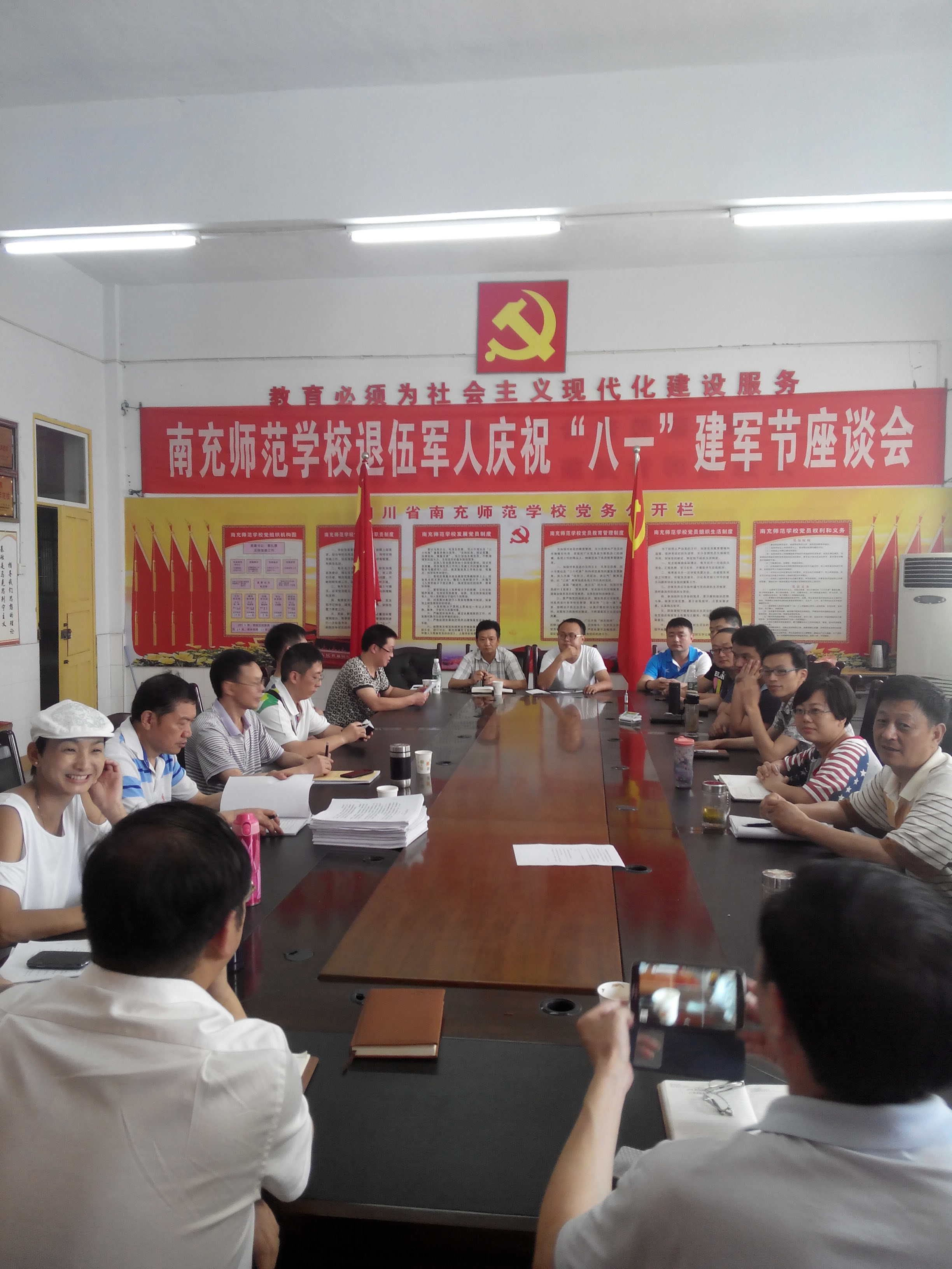 今日上午,我校全体领导干部在学校职教楼二楼会议室和7位退伍转业军人开展了首次“庆祝‘八一‘建军节’’”座谈会,同时还邀请了即将退休的4位教职工参加。
