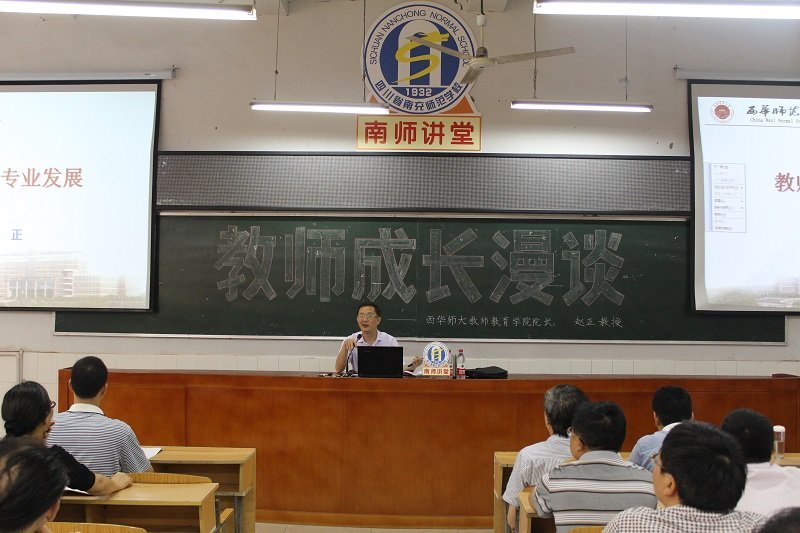 下午,“南师讲堂”第五讲在我校职教楼学术厅正式开讲,本次讲座我校邀请的主讲嘉宾是西华师范大学学教师教育学院院长、硕士生导师——赵正教授,这次讲座由我校李长江副校长主持,我校全体教职工准时到场聆听了讲座。