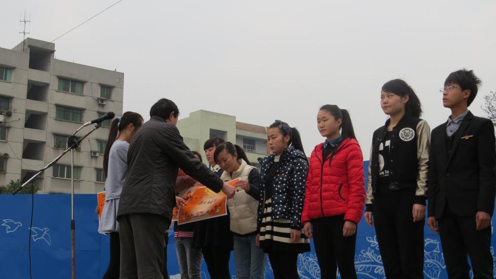 最后,政教处王勇主任宣布了2013-2014学年度上学期学校优秀班集体名单,学校李长江校长为获得荣誉的班级颁奖。