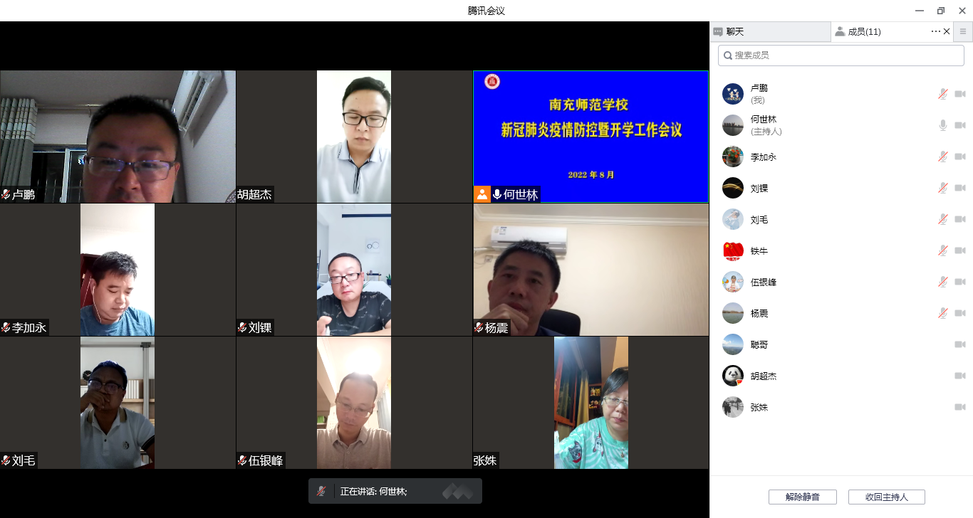 疫情发生后,学校党委高度重视、立即行动,严格按照南充市应对新冠肺炎疫情应急指挥部公告和相关文件精神,对全校疫情防控举措进行细化和安排,对全校师生的流动去向、身体状况进行摸排,切实保障广大师生的生命安全和身体健康。同时号召全体南师人特别是党员干部主动向居住地社区报到,积极参与抗疫志愿服务工作,为全市疫情防控工作贡献南师力量。