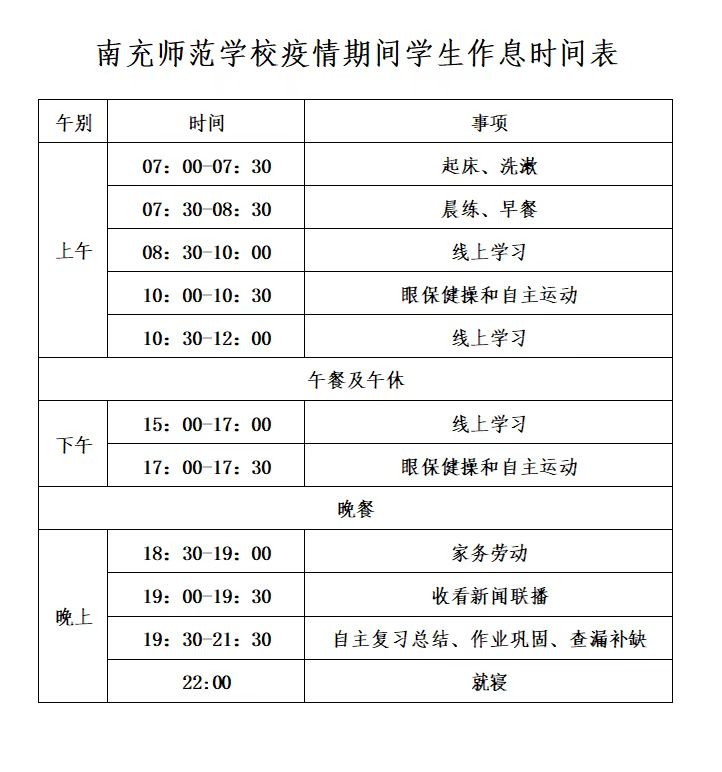 南充师范学校全面贯彻南充市疫情防控的各项要求,认真落实教育系统工作部署,停课不停学,有序推进线上教学工作,努力做到线上教学与线下学习科学衔接,关注学生获得,实现育人目标。