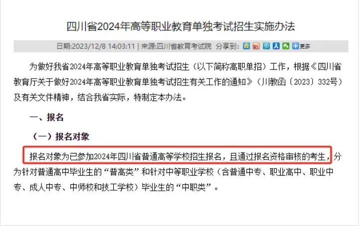 2024年四川高职单招政策是在去年12月8日公布的,同学们要及时关注2025年的单招政策。