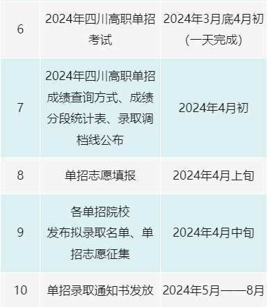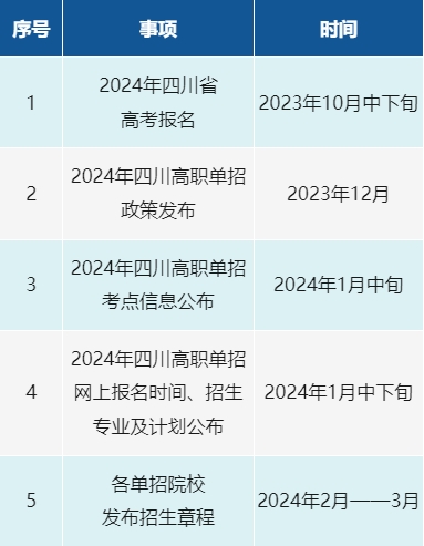 2024年四川高职单招重要时间节点