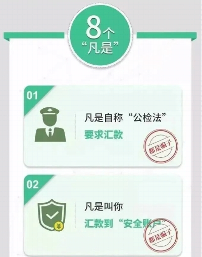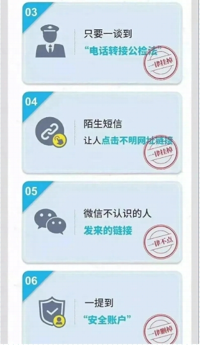 虽然骗子的诈骗手法层出不穷,但是只要我们牢记“六个一律”,坚持不轻信、不汇款、不透露、不扫码、不点击链接、不接听转接电话,就可以保住我们的“钱袋子”。
