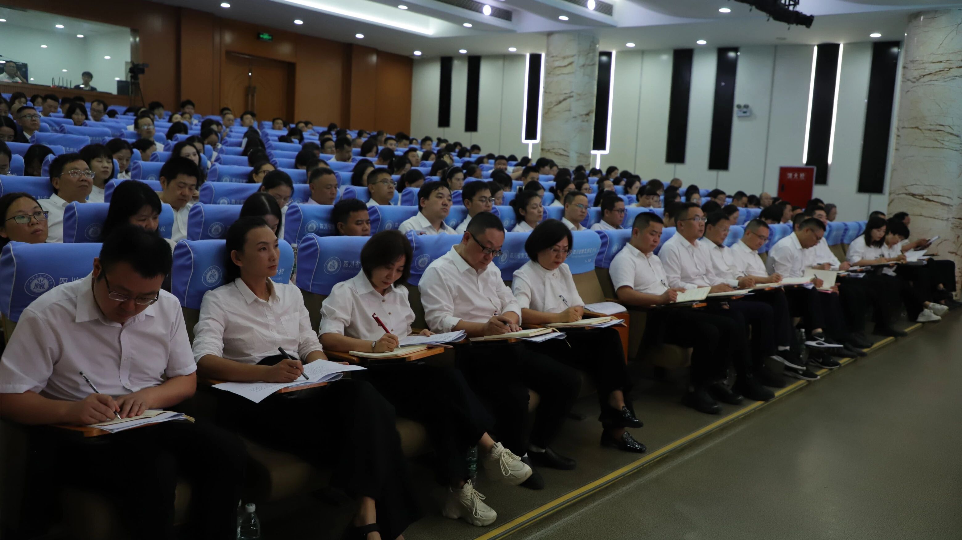 2025年9月29日下午,南充市中等职业技术学校第一次教职工大会在龙门校区学术厅隆重召开。这场承载着历史意义的盛会,标志着南充师范学校、南充中专校、南充技工学校三校融合后的崭新启航。来自三个校区的教职工济济一堂,共同见证这一里程碑时刻。市纪委监委第四纪检监察室主任张继红应邀到会作专题讲座,市委教育工委委员、市教育和体育局党组成员、副局长谢小平到会指导,学校党委书记张明伟出席大会并讲话,党委副书记何世林,党委委员、纪委书记徐黎明,党委委员、副校长何勇,党委委员、副校长姚钦烽,党委委员、副校长吴知了出席会议。大会由党委副书记、校长罗锦主持。