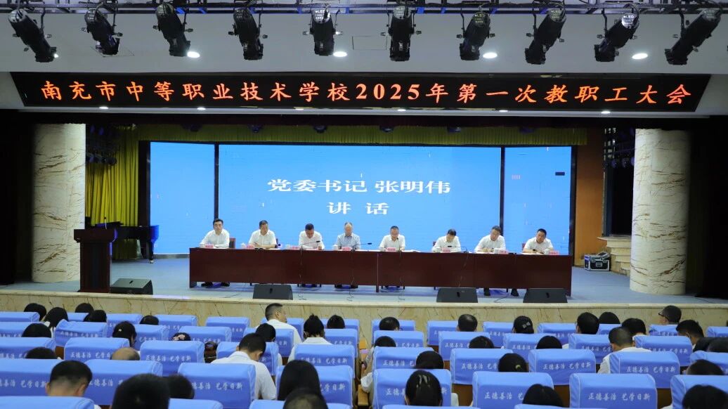 此次大会,是一声凝聚共识、汇聚合力的铿锵号角,更是一曲启航新程、催人奋进的激昂战歌!站在崭新的历史起点,南充市中等职业技术学校的全体教职工已然整装列阵,目光如炬,心火如燃。我们必将以此为翼,乘风而起,以同心共筑伟业,以实干开创未来,携手谱写学校融合跨越、高质量发展的壮丽新篇!